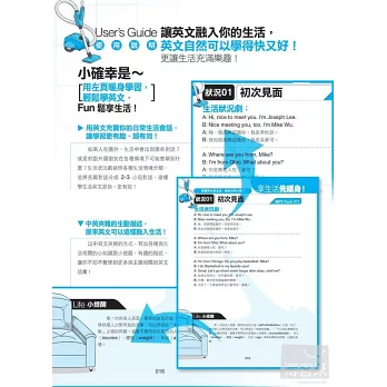 以中英文交錯的呈現方式,寫出各種與生活相關的小知識跟小提醒,有趣的描述,讓你不知不覺學到更多與主題相關的英文單字~