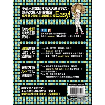 其實不管是 T 恤上的英文、朋友用中英夾雜在 FB 塗鴉牆發表的近況,還是部落客在網誌上引用了一小段英文……,在很多狀況下,就算你不懂這些英文,對你根本沒有任何影響,但是如果你能讀懂、聽懂一些生活英文,就能為你原本無趣的生活帶來一點小小的歡樂,對於快樂,永遠都不嫌多,對吧?