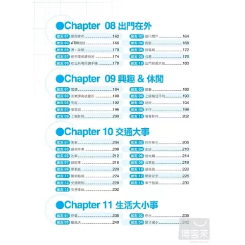 關鍵語彙為你準備各種狀況必備用詞,只要能記得這些詞彙,就能進行基礎溝通,更可以代換至狀況劇對話或是生活單句中,隨你靈活運用!