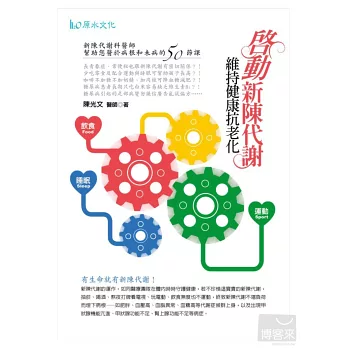 這本書是從民眾的角度,將新陳代謝的觀念和新陳代謝常見的疾病,如糖尿病、高血脂、甲狀腺功能亢進、甲狀腺功能不、腎上腺功能不足…等,以淺顯易懂的短文和圖表介紹,並依問題導向的方式,讓讀者依不同的需要找到解答。希望讀者透過閱讀此書,重視新陳代謝,維持最佳的身心健康。