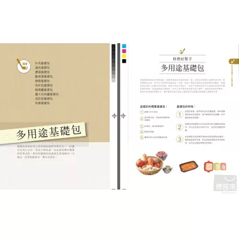 這一次的新式食材保存,除了教你聰明處理蔬果、肉類、五穀、乾貨…共100多種常見食材;還要詳解食材的變化處理,多樣食材組合上菜,烹調時間大幅縮短,但食材風味卻鮮度不減。達人更設計了20款冰箱常備的多用途基礎包、萬用醬,方便延伸應用在多樣料理上,天天組合新菜色;並體貼有剩菜困擾的婆婆媽媽們,告訴你做過多菜時的清冰箱料理,巧思變化做成新一道美味。