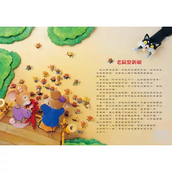 閱讀這三則故事,小朋友能充分領略中文的趣味,培養對語言表達的敏銳度。《老鼠娶新娘》運用大量的押韻,讀來像歌謠一般琅琅上口好記又有趣,讓小朋友欣賞中文的韻律。《傻女婿》裡,傻女婿在前往岳父的生日宴會途中向人學了一些「好話」,這些話都在描述當時所看到的景物,但是傻女婿在宴會上把這些話說出來,卻變成一種比喻的說法了。比喻的語言趣味一開始對小朋友來說比較抽象、具挑戰性,但在故事裡都有簡單易懂的解釋,而且孩子對語言的理解能力往往比大人想像的來得厲害許多,透過生活化的故事引領,讓小朋友從小認識中文豐富的語言表達,培養他們對語言的敏銳度。