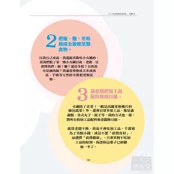 希望讀者們透過這本書,建構有條理、有系統的飲食觀念,除了選擇幫助減重的食物外,更注重天然及有機食材對健康的益處,讓你不只是一時遠離肥胖,而是扎實建構一輩子都受用的健康管理模式。
