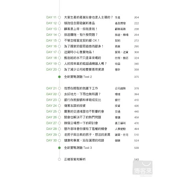 將比較難記的單字分為30個多益常考主題,搭配有趣的『單字小故事』一起收錄在裡面。透過這些主題性聯想學習法,可以輕鬆記住單字,還能同時記住單字在句子內的用法,加快背誦速度。