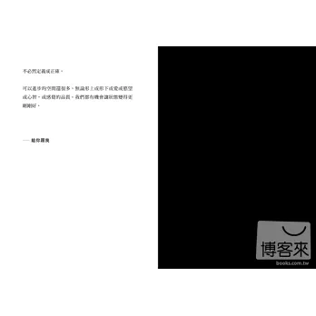 ●生活中節奏順暢的事件處理,不多不少的適切狀態,才是真正好的設計。小開本、內斂的裝釘方式、簡潔流暢的行文方式,本書企圖在書籍裝幀、文字編排上,呈現最適切受控的設計完成品。