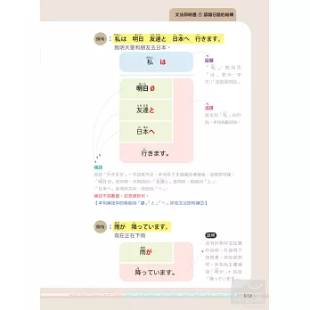 每章節都將學習重點綜合整理出例句與會話,搭配解析說明,掌握所有學習必備要素,不僅讓你只是學文法,更要懂得用文法。