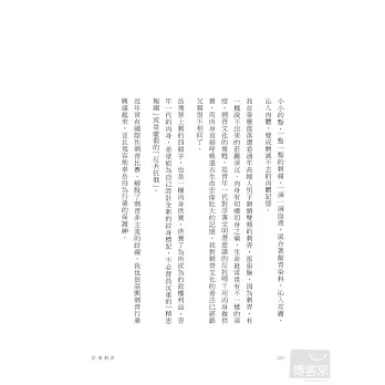 華人儒家的傳統,把心靈精神放得太高,長時間避諱談肉身慾望,或許反而形成了社會裡如此熱切耽溺於肉身隱私的偷窺。肉體的紋身刺青、肉體的解放、青年人的轟趴、淫交、性慾底層的悸動挑逗、娼妓文化的蔓延、網路援交,一夜性交易的普遍、情色影片逐漸成為主流文化一部分--都在這一系列的專欄裡,讓我認真不含偏見地思考書寫起來,也許只是我自己補作的肉身功課,也可能是大量《壹週刊》讀者共同想認識的另一種肉身探討的方式吧?!