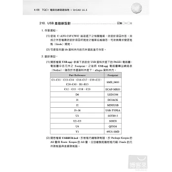 ●「TQC+ 電路佈線認證指南OrCAD 16.5」範例題目包含PCB LAYOUT載入連線關係、PCB元件擺放及佈線、輸