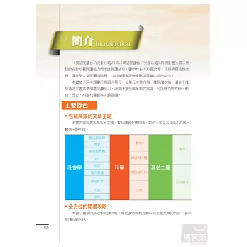 每篇文章皆依照閱讀主題,搭配豐富彩圖輔助學習,不僅加深學習印象,也提供相關且更深入的背景知識。