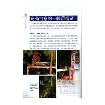 三峽是北臺灣淡水河上游早期開發的沿河聚落,而座落在街區中心的三峽祖師廟,集宗教、歷史、文化及藝術之大成,是國寶級大師李梅樹用畢生的精力所締造的「東方藝術殿堂」。位於祖師廟左側的民權老街,曾以經營藍染布店、茶葉,成為當時最熱鬧的街區,至今仍為臺灣最長的一條老街。除了人文歷史之外,三峽還有許多適合徒步的景點,從鳶山步道遠眺,或是順著大豹溪探尋瀑布秘境,在五寮溪品茗、嘗綠竹筍,夏日黃昏還可探訪螢火蟲的芳蹤,而在三峽溪旁的三峽虹橋,更是臺灣少數僅存的拱橋,常是詩人、畫家筆下創作的題材。