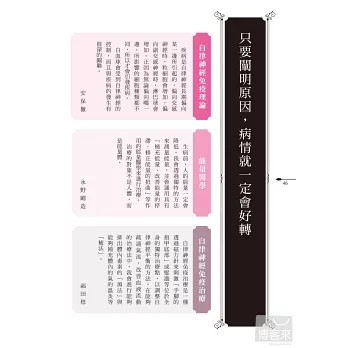 三大「日本自律神經免疫治療研究會」的醫生,將於本書中,分享該如何透過「自律神經」與「免疫系統」來掌握疾病。