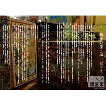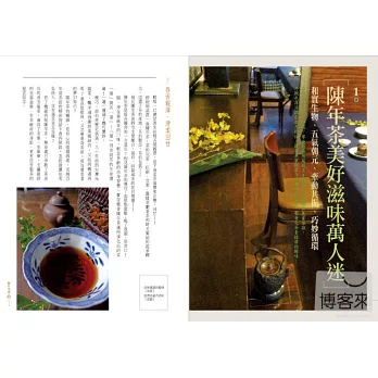 茶新鮮最好?陳年茶更好?陳年茶的外觀有著歲月浸潤過的色澤,茶質在時間的洪流中互相推動及補充,漸由新鮮走進陳斂,帶來沉戀、回甘……。品茶的感覺既主觀又客觀,對於陳年茶的獨特,並非人人有感,作者從陳年茶的好滋味談起,多面向地帶出品茗及鑑賞陳年茶的要件,從茶葉經時間轉變的判別,到了解其茶性及相對應的茶器,以及從茶包裝本身的意象符號、圖像瞭解其所刻劃著陳年茶的來歷等,娓娓道出陳年茶有別於新茶的一番風味及豐厚時間感所賦予之「運」味,再輔以歷史典故及作者個人品陳年茶三十多年的經驗分享,為讀者提供了一個入門進而深究的管道,引領讀者體驗一場以文字承載的品茗之旅。