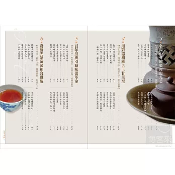 本書是茶人池宗憲繼「茶敘藝術」、「茶翫雅集」系列之後,再以「茶韻鑑賞」為系列名重啟品茶的新作,以陳年茶為主軸,討論其經運行運轉後,所散發出的醇和風味及鑑賞之道。