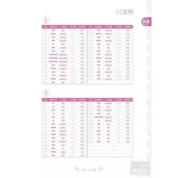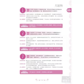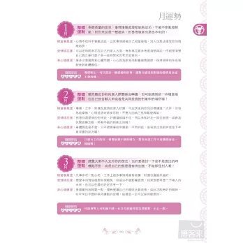 獨家收錄星座戀愛傾向、桃花運UP、適合工作性質與建議和增強偏財運小祕方,讓你日日走好運。