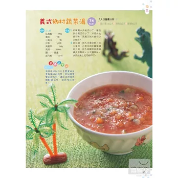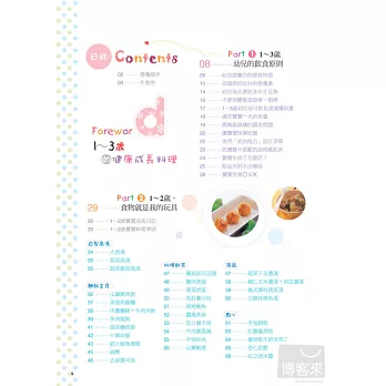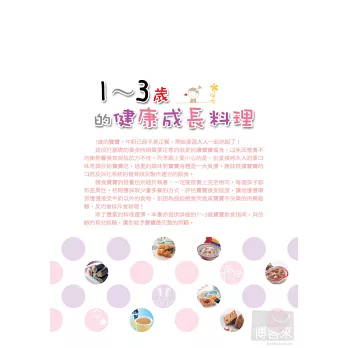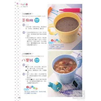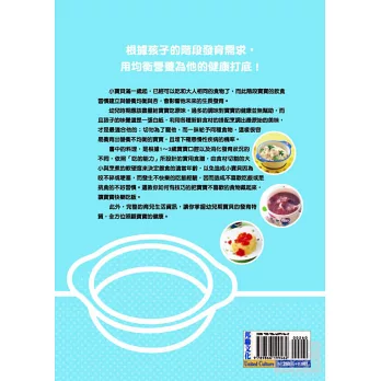 *利用一般常見的食材,根據寶寶的口腔以及消化發育狀況分齡設計(1~1歲半、1歲半~2歲、2~2歲半、2歲半~3歲) 出家長容易烹煮、小寶貝也會接受的最自然的飲食,照顧孩子的健康。