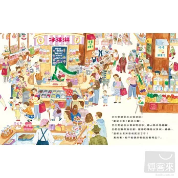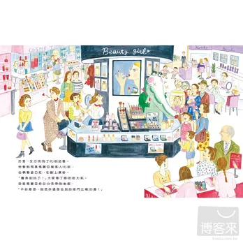 ★ 這本書厲害的地方是很用心的描繪每一位百貨公司的客人。出現過一次的情侶跟小朋友們,在別的畫面中也出現了。每次讀都有不同的發現,非常有趣,好像真的在百貨公司裡散步的感覺呢!~讀者mintjam