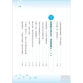 第二章將講述關於「放慢腳步過生活,健康習慣Plus」。當中內容的程度比第一章更高些,增加了「只要養成這些習慣,便能進一 步調整好自律神經」的內容。