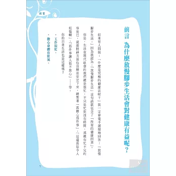 希望各位閱讀完本書後,能得到「放慢腳步生活」的祕訣。