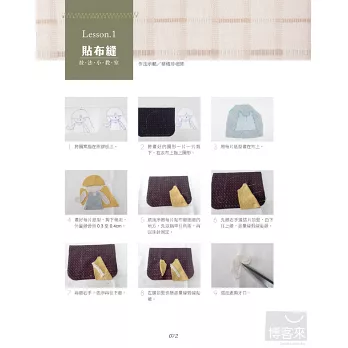 本書特別收錄三大技法示範:貼布縫、MOLA技法、教堂之窗技法,清楚的圖片教學,即使是初學者也能立即上手!