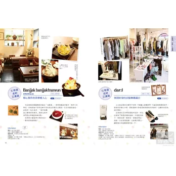 本書將首爾分為六大區塊,包含弘大、孝子洞等必去地區,螢光幕上影領潮流的韓風穿搭、穿越劇裡極具韻味的傳統建築,只要跟著本書走,就能一網打盡;所有內容一目瞭然,有利讀者規劃路線,搭配書中便捷的地鐵資訊,首爾就是你的後花園!琳瑯滿目的韓風店家,讓你週週旅行滿載而歸。