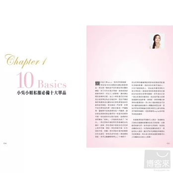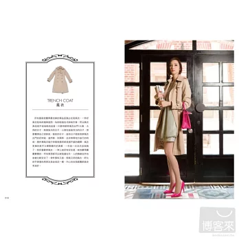P.S.:書裡出現的單品大部分都是我個人擁有,為了真實呈現我的穿搭觀點,平價服裝和時尚品牌都同時出現在書中,女人不需要變成奢侈拜金女,但一定要懂得愛自己、認真工作、生活,讓自己越來越美,這才是我最想和大家分享時尚穿搭的初衷。