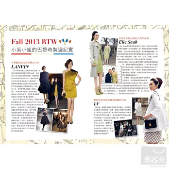 完整披露穿搭的重點刪去法、不能不follow的購物網站,以及頂尖時尚情報來源大公開……讓妳變身成最會玩搭配的時髦女孩!還有小吳小姐的國際時裝週大窺密,在時尚競技場上,如何豔光四射的秘訣;晚宴、PARTY的最佳穿衣以及妝髮準則!