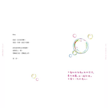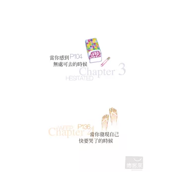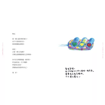 所以,這本書是一份「祝福」。當你感到自己無處可去、當你覺得自己是一個人、當你感覺快要不愛自己、或是當你發現自己快要哭的時候……希望可以讓你知道,有人懂你、在默默為你打氣,給予擁抱。