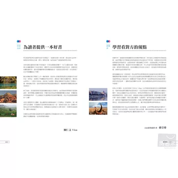 有些畫面,人生中就只有那麼一次邂逅的機會!如何帶走好風景一次到位,作者依其多年的拍攝經驗,整理出風景攝影的12大要素與讀者分享。但其實很多觀念和技巧,運用在其他主題上也是互通的,因此這些不只是拍攝風景的關鍵技巧,就學習攝影的基礎知識來說,也是相當受用。懂光線、會構圖、用色彩,最後等待拍攝時機,相信掌握這幾個重點後,您隨時都可以帶走眼前所見的好風景,為旅途和生活留下珍貴回憶。