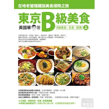 這次總幹事黃國華花費三年時間精研,要介紹最棒的東京B級美食&漏網小店給你!這些價格普級,美味卻是特A級的東京美食店,就像台灣許多無名美味的路邊攤,藏在不起眼的巷弄裡。就讓達人帶路,帶你走一趟絕對超值的滿腹之旅!