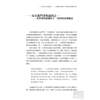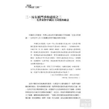 現在時間又過去了八年。在這八年裡,我又陸陸續續作了不少增補和修訂。只說字數,從原來的五十八萬增加到七十多萬;原來正文分為二十章,現在是二十五章,材料是更多,條理是更細密了。自以為比起以前的兩個本子來有了較大的改善。必須說明的是,這一版和以前的最大不同之處,是取材的範圍大大的擴大了。在本書的初版中,我的取材僅僅限於當年的報紙、期刊這些出版物,以及權威人士如毛澤東、陸定一、李維漢、薄一波等人的著作,都是公開的材料,無論何人只要願意都不難找到的材料。而在這一版中,在這些無論何人都不難得到的材料之外,我也用了不少許多人未必都有機會看到的材料: