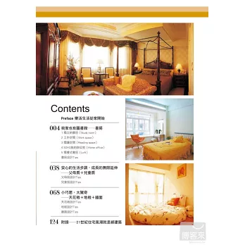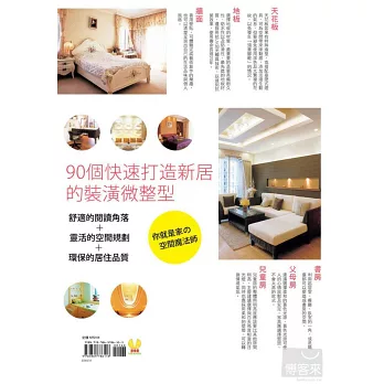 本書介紹適合現代空間的書房、舒適優質的父母房、兒童房,以及空間的骨架──天花板、地板與牆面。讓對居家裝潢有興趣的讀者,透過本書的設計新概念,都能擁有良好的空間規劃,不僅居住得更舒適,也可以讓家人的情感更融洽,並可提升生活品質。