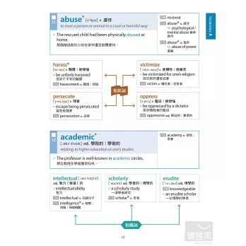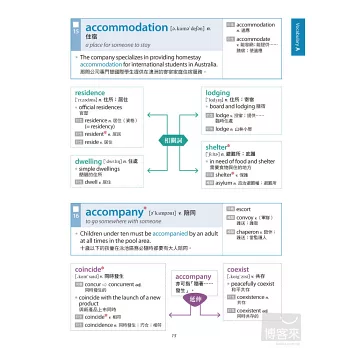 重點補充同義字、相關字、衍生字、搭配字及片語等內容,有效建立單字庫。