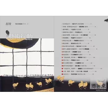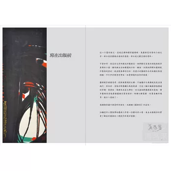 本書所介紹的藝術家共有十九位,包括:張大千、趙春翔、王昌杰、李奇茂、劉其偉、吳冠中、李轂摩、黃永川、馬白水、廖德政、洪瑞麟、廖修平、蔡蔭棠、李錫奇、張耀煌、高行健、潘麗紅、杜布菲,以及多田美波。