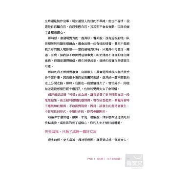 ‧怕寂寞的女人一開始就輸了,因為男人知道,你比他急。那麼,他何必花時間好好地尊重你、對待你呢?