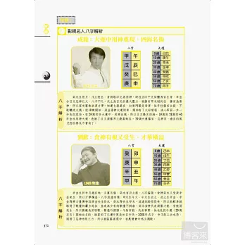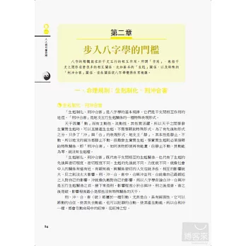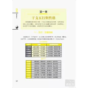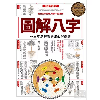 2.白話圖解:八字學涉及陰陽五行、天干地支等眾多易學知識,本書中將這些知識用極富美感的圖解手法表現出來,賦予八字學時代氣息。