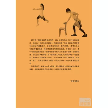 運動非常重要,但倘若一直持續不正確的運動方式,反而會對身體造成傷害。因此在投入運動之前,一定要有自我保護的觀念!本書作者為日本柔道與排球國家代表隊的指導教授,為了保護選手的身體,特別注重運動傷害的問題。也因此,他在規劃本書時,會依據運動需求與程度,設計出各種不同類型的課程,以確保讀者能夠在最安全的狀態下進行運動。