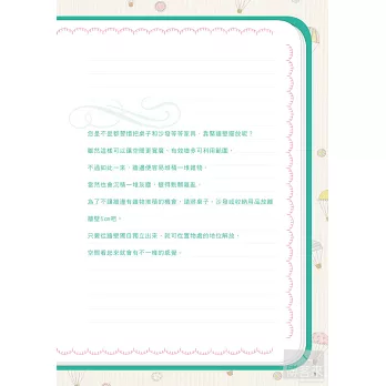 09幫笨重的傢俱加上高度約5cm的腳,空間不但變大了,也很容易打掃。28-29