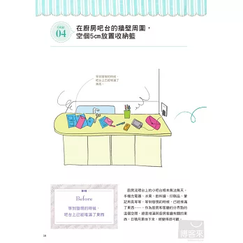 04在廚房吧台的牆壁周圍,空個5cm放置收納籃。 16-17