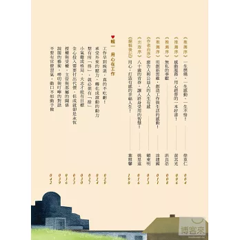 本書是廣告教父賴東明,結合自己工作的思考與管理經驗,發揮廣告人對生活的創意及行銷人敏銳的觀察,一篇篇「用心」的好文, 讓你在工作與生活上都能終身受用!