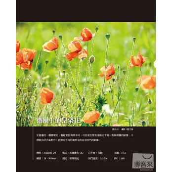 作者擁有數十年拍照經驗,讓你一窺專業人士是如何取材與設定,書中包含 6 大主題情境、45 張不同場景的相片;不需費神了解艱深的攝影理論,直接透過作品即可了解拍攝者的構思與想法。只要參考作品拍攝時設定的數值與環境條件,即可掌握相似的氛圍。