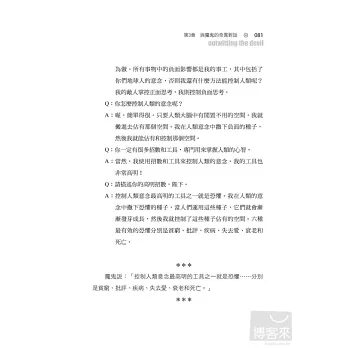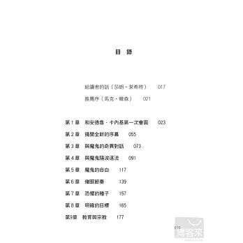 你會發現他訪談的魔鬼是真有其人,還是虛構的人物──就像你自己個人生活和親身經驗中,可能會遇到的魔鬼一樣。──馬克‧維多‧韓森(Mark Victor Hansen),紐約時報暢銷書榜首《心靈雞湯》(Chicken Soup for the Soul)合著者
