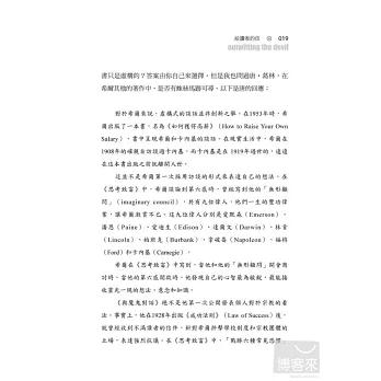 在七十多年之後,莎朗‧萊希特──當今最成功的勵志作家之一,編輯原書手稿,並加以詮釋和導讀,幫助當今的讀者理解書中的奧義,以擺脫魔鬼的擺佈,過著人人稱羨的富足生活。