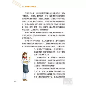 本書將表現在臉上的情緒再細分,例如憤怒又可分為抑制的憤怒、生悶氣、厭惡升級為憤怒、怒氣未消,臉上的表情各有不同變化。