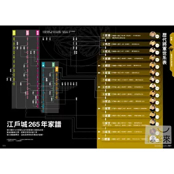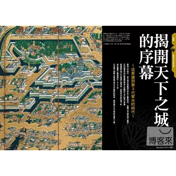 本書以江戶幕府的歷史為主軸,系列性介紹城郭的結構與起源、歷代將軍生平、大奧女中的生活與史上留名的各大事件,並揭開城內許多鮮為人知的秘辛。書中採用大量CG模擬江戶城與城內人們的過往情景,搭配史料圖片、浮世繪以及實景照片,輔以簡潔扼要的文字敘述,不但為讀者完整重現江戶城和城內住民生活的原始風貌,也能讓讀者在最短的時間內迅速了解江戶幕府歷史的來龍去脈,一本書就能完全掌握江戶城內的奧秘。