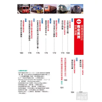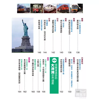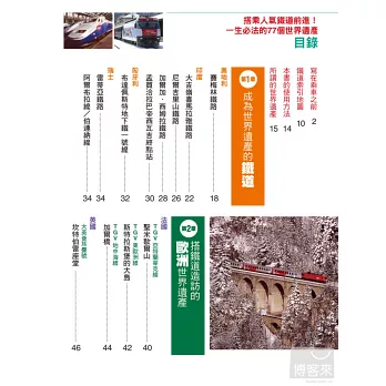 在本書當中,我寫錄了至今曾經搭乘列車造訪過的七十七個世界遺產名勝。世界上大約有九百個被列入世界遺產的勝地,只是並不是所有勝地都可以經由鐵道前往可及。