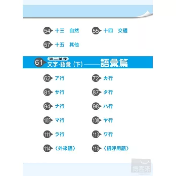 加上2010年開始,日語能力測驗新制,區分為N1~N5五個級數,日檢的新制度更是成為眾多考生議論紛紛的話題之一。剛好藉由此契機,將長久以來的教學內容,徹底做了一個大檢視,配合新制度的趨勢,重新整理、歸納,希望可以讓本書成為芸芸考生的有力幫手。