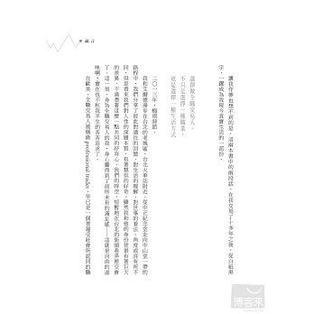 由於有行走台日美星的豐富閱歷,也使得梁展嘉對「操作交易與生活」的關係有深刻觀察;他在本書一再向讀者強調「獨立思考」、「自我省察交易紀錄」對投資成功的重要性;這些領悟貫穿了他自少年時見證台股狂飆年代,到今日「愈挫愈勇」、「愈看愈明」的全職交易人生涯,本書不單是一本能協助投資散戶進場不受傷的投資心法入門書、也充滿了處處驚歎的交易者人生心理學。