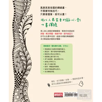你會畫禪繞嗎?這本書會教你!你可以在書中學習禪繞藝術(Zentangle®)的基礎理論,並且找到繪製超過100種禪繞圖樣的教學,這些圖樣全來自於蘇珊‧麥尼、珊蒂‧史汀‧巴叟勒繆和瑪莉‧布朗妮等禪繞認證教師的設計。這本美麗的書充滿了禪繞藝術和禪繞衍生藝術的作品欣賞,還有禪繞手工藝品及人們透過禪繞提升了安樂與幸福的生命故事。