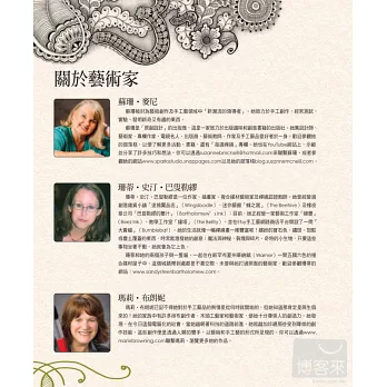 ★還有其他來自世界各地的禪繞認證教師,也會在書中分享他們的藝術作品和啟發人心的故事。