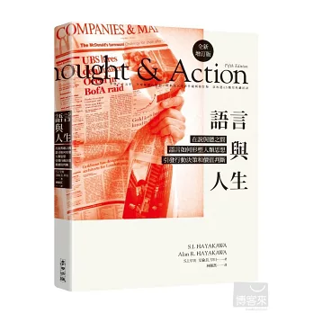 而早川教授的《語言與人生》也可算是連接語言與社會現象的一個美好成果。雖歸類為「語意學」的書,但絕對與一般所謂的傳統「語意學」的書不同,他採用了波蘭裔美國哲學家暨科學家阿爾佛烈特‧科斯基(Alfred Korzybski)的「通用語意學」觀點,以貫串全書的譬喻「語彙世界之於外向世界,正如同地圖之於其所劃定的疆土」,極盡全力闡述「地圖不等於疆土」的概念。正因為大眾容易將詞彙世界誤以為外向世界,於是引發了諸如溝通不良、語言誤用、價值偏見、刻板印象、二元價值取向、媒體操控欲望、文化遲滯等社會問題。